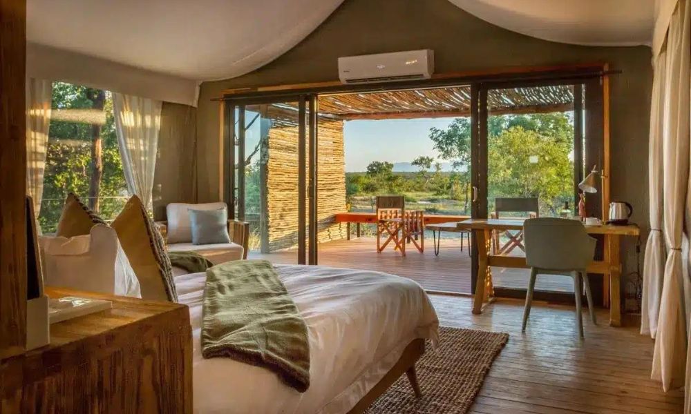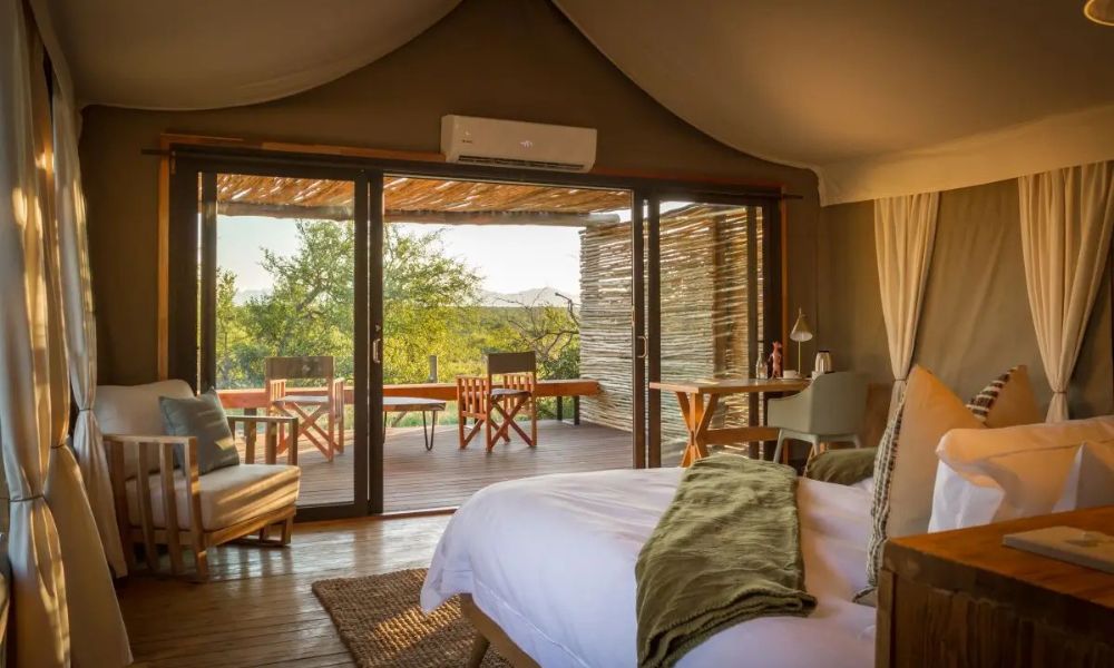 For your first two nights, you’ll stay at Imagine Africa Tented Camp in the exclusive Balule Game Reserve. Here, the luxurious, fully equipped safari tents are designed for an immersive experience, featuring en-suite bathrooms and private decks. This intimate setting allows you to hear the sounds of the bush up close while enjoying stunning views of the surrounding wilderness.